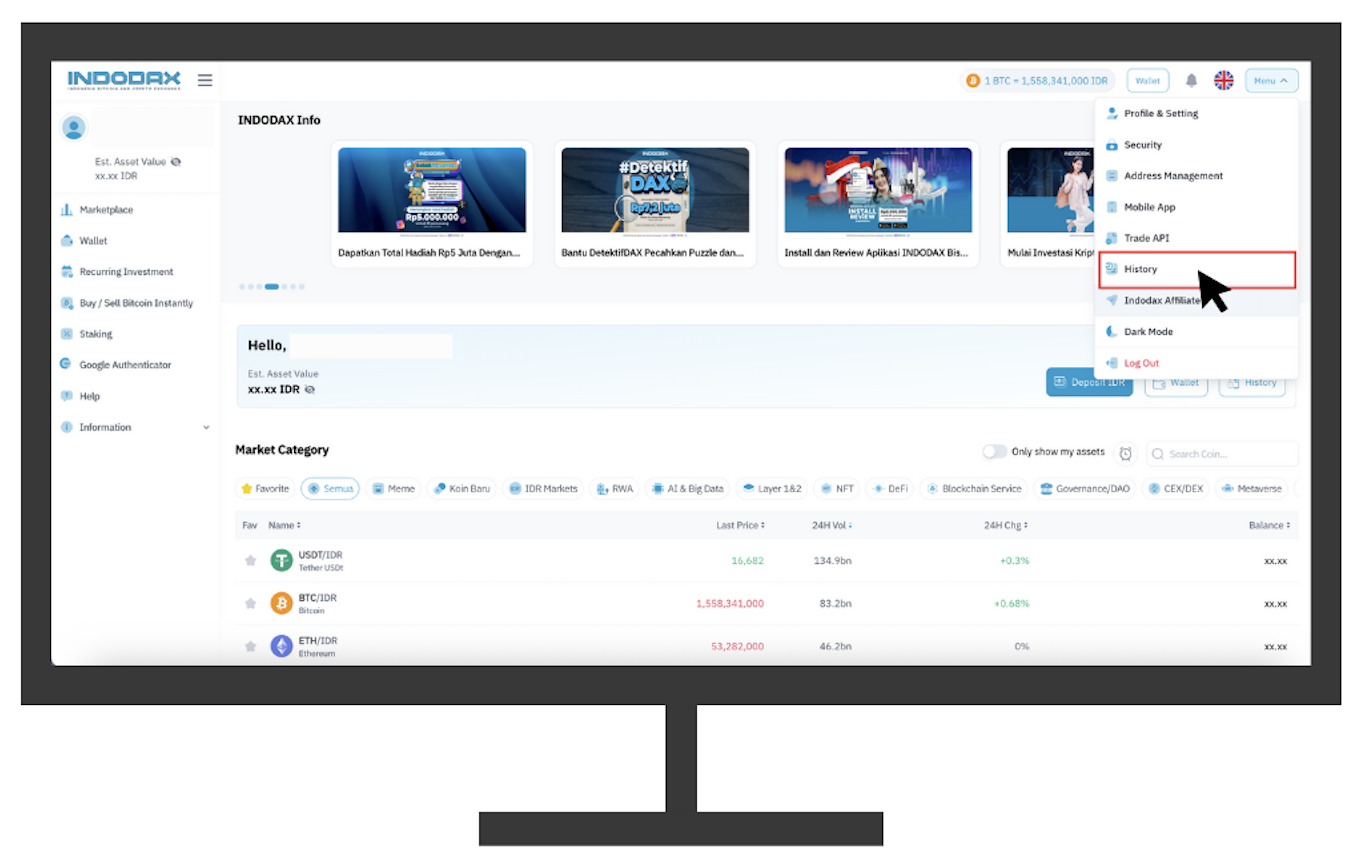 You can download the proof of tax collection report on your Indodax account with the following steps: