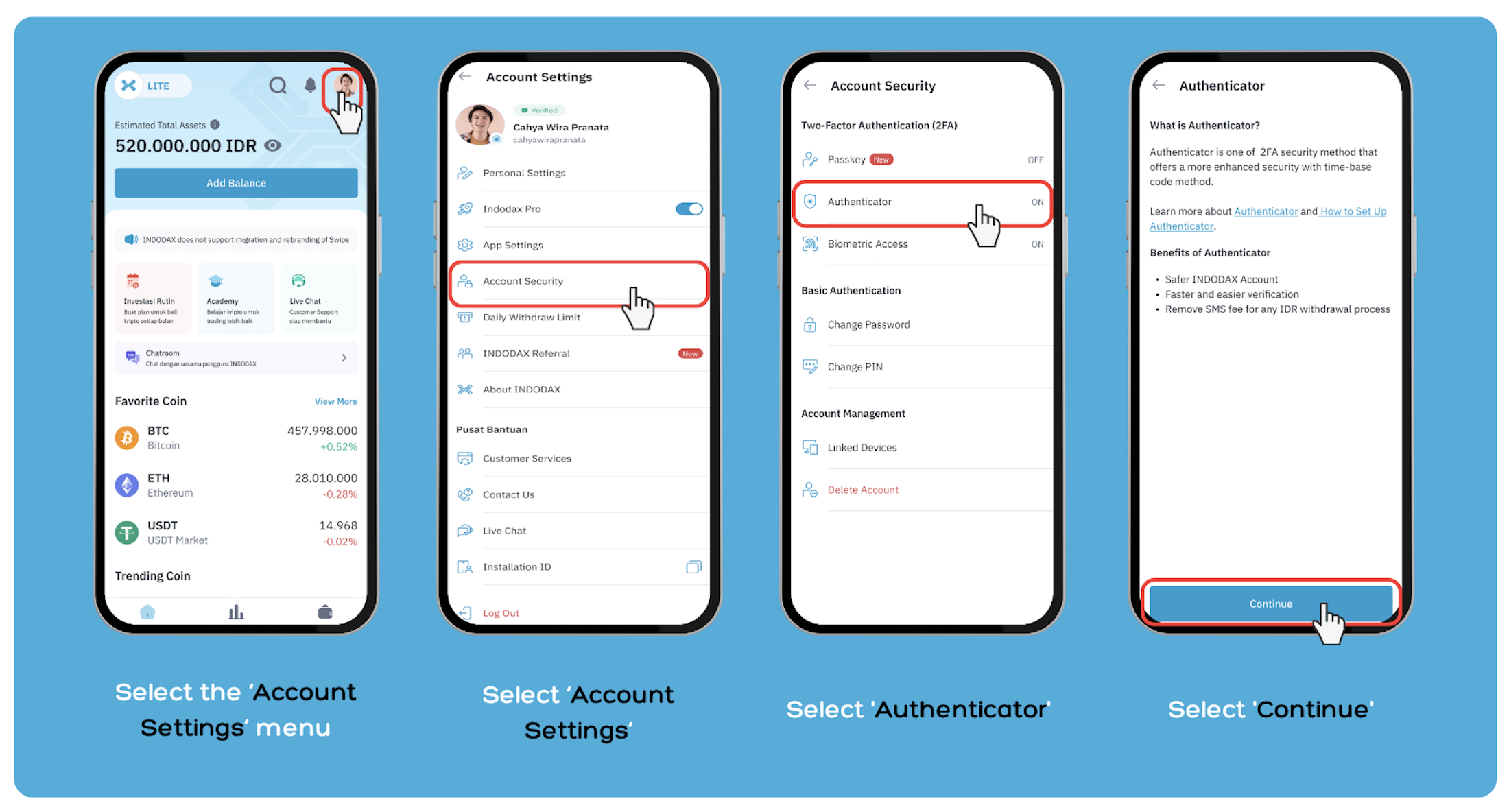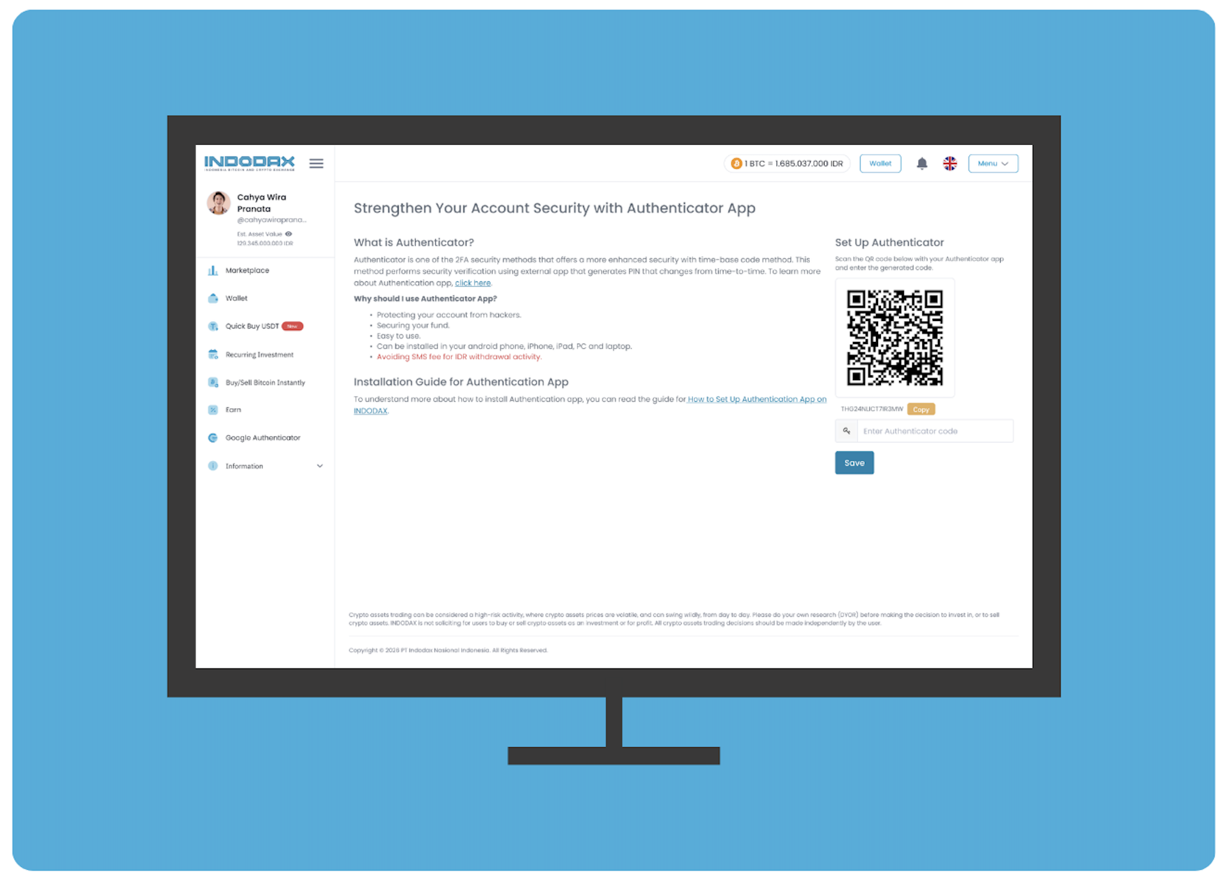 From now on every time you try to login you will be asked to enter the code from Authenticator. We will also ask for a pin for every digital asset and Rupiah withdrawal process to secure your account.