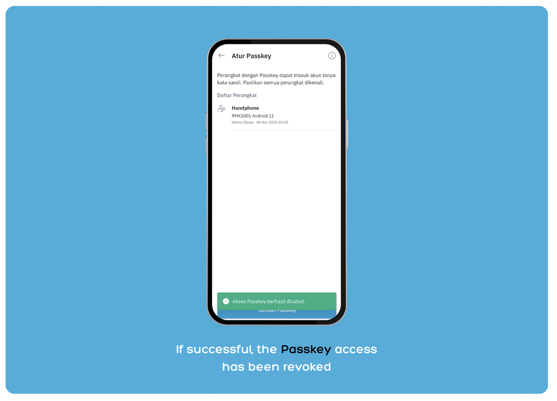 If successful, the Passkey access has been revoked.
