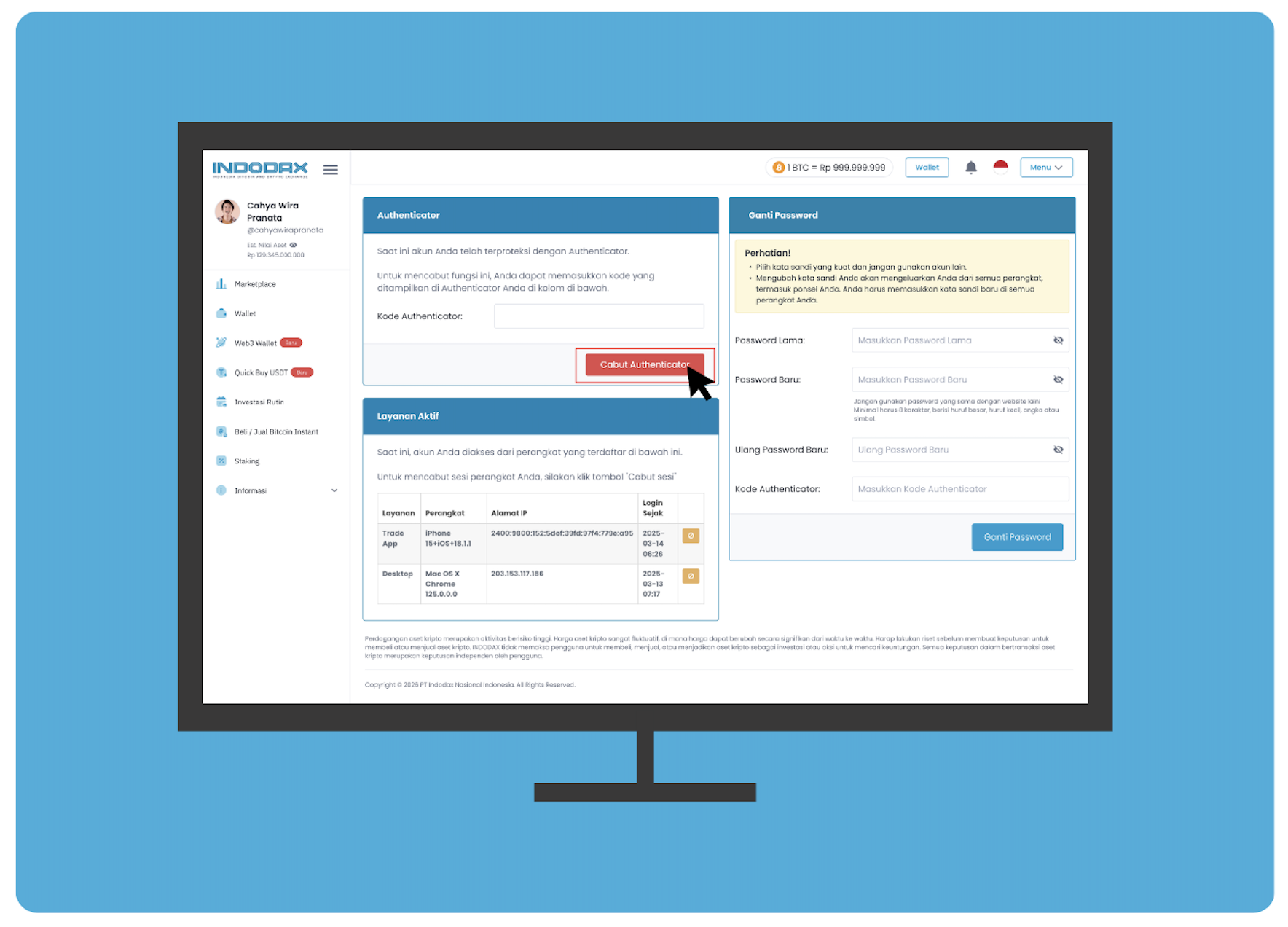 Jika Anda mengakses akun Indodax melalui website: