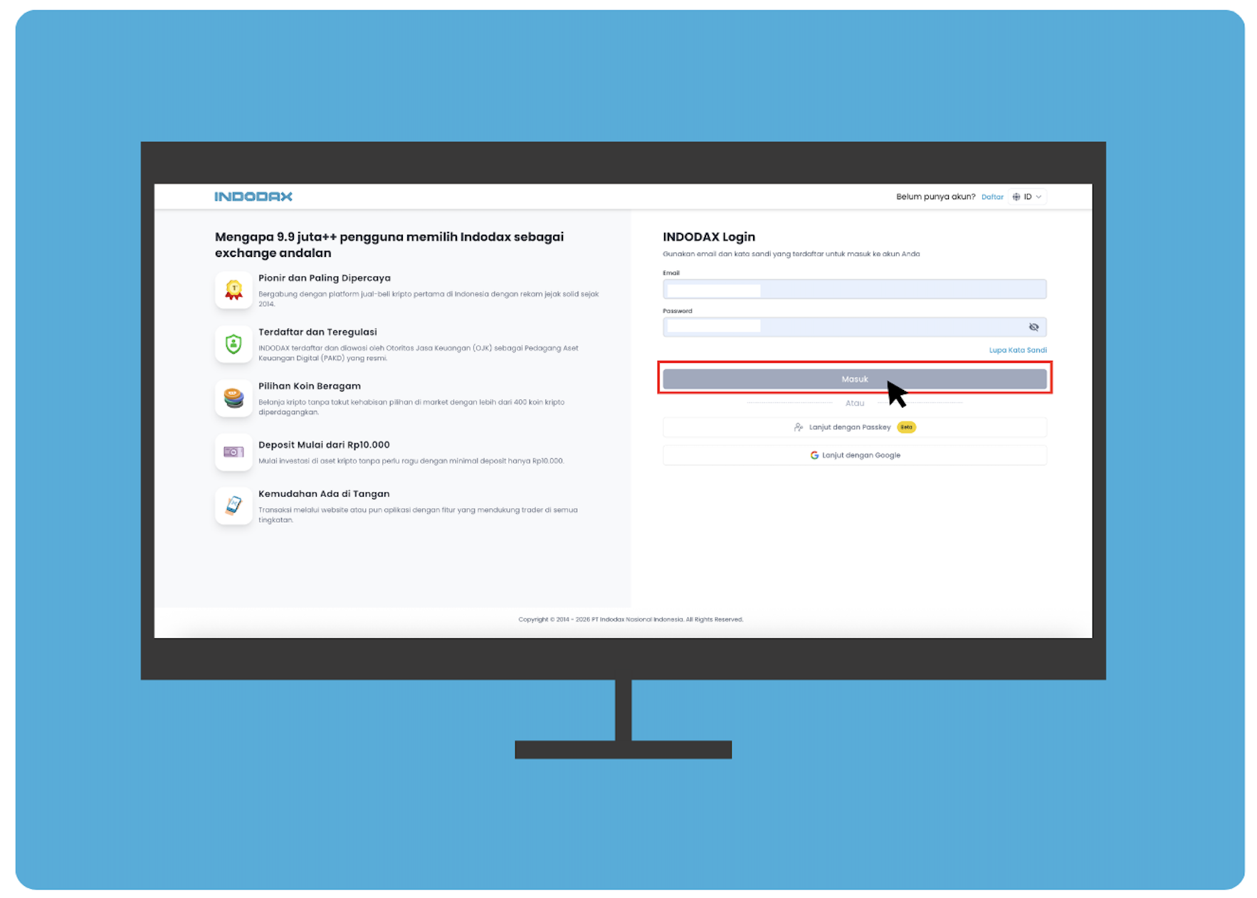 Silakan lakukan login kepada akun Indodax Anda.